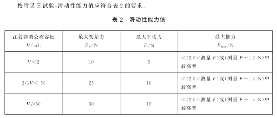 一次性使用無(wú)菌注射器的滑動(dòng)性能直接影響其適應(yīng)性,是各廠家關(guān)注的指標(biāo)之一。為此,標(biāo)準(zhǔn)GB15810-2019《一次性使用無(wú)菌注射器》附錄E中明確規(guī)定了注射器的滑動(dòng)性能的測(cè)試要求和具體試驗(yàn)方法。